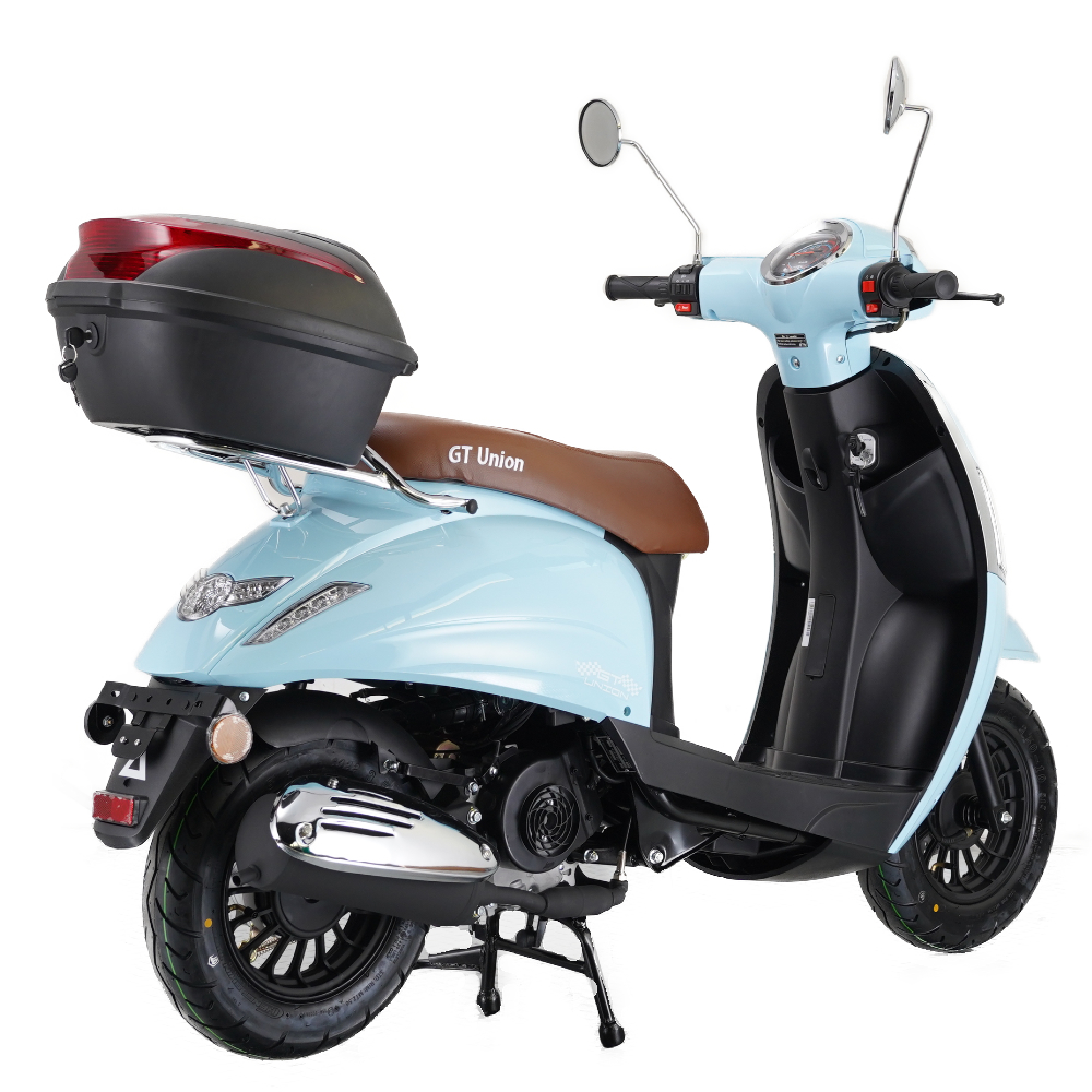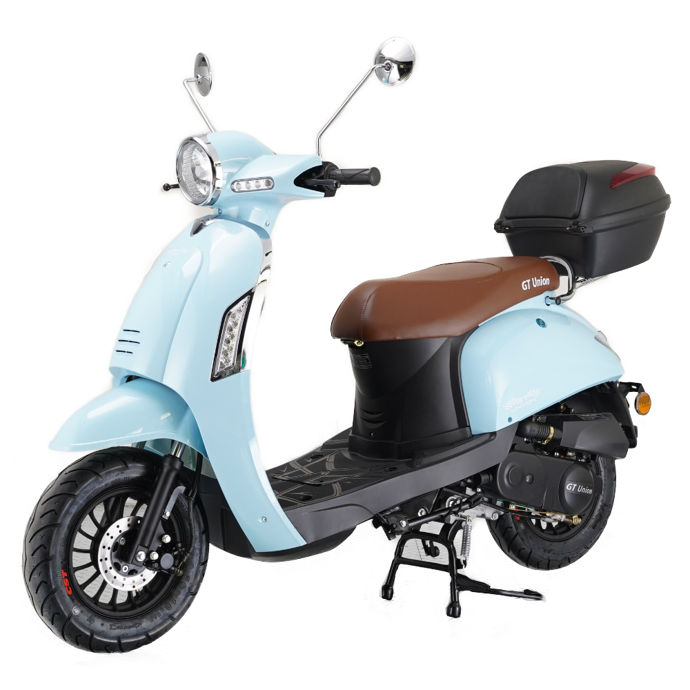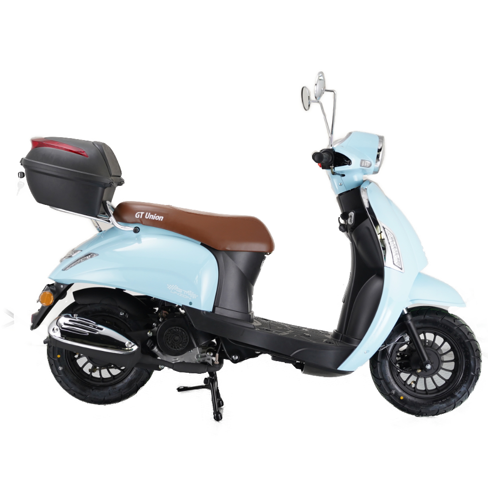 Der Massimo 50 von GT UNION besticht neben seinem tollen Design mit einem ausgereiften Fahrwerk für optimalen Fahrkomfort. Er ist mit einer modernen und leistungsfähigen Einspritzanlage versehen. Das ist in der 50ccm-Rollerklasse zu diesem Preis kaum zu finden – bei GT UNION ist das Standard! Motoren mit einer Einspritzung (EFI) verbrauchen durch das optimierte Motormanagement weniger Benzin und verbrennen den Kraftstoff deutlich sauberer als herkömmliche Vergaser-Motoren. Belohnt wird das mit einem deutlich besseren Startverhalten - auch bei kalten Temperaturen.
