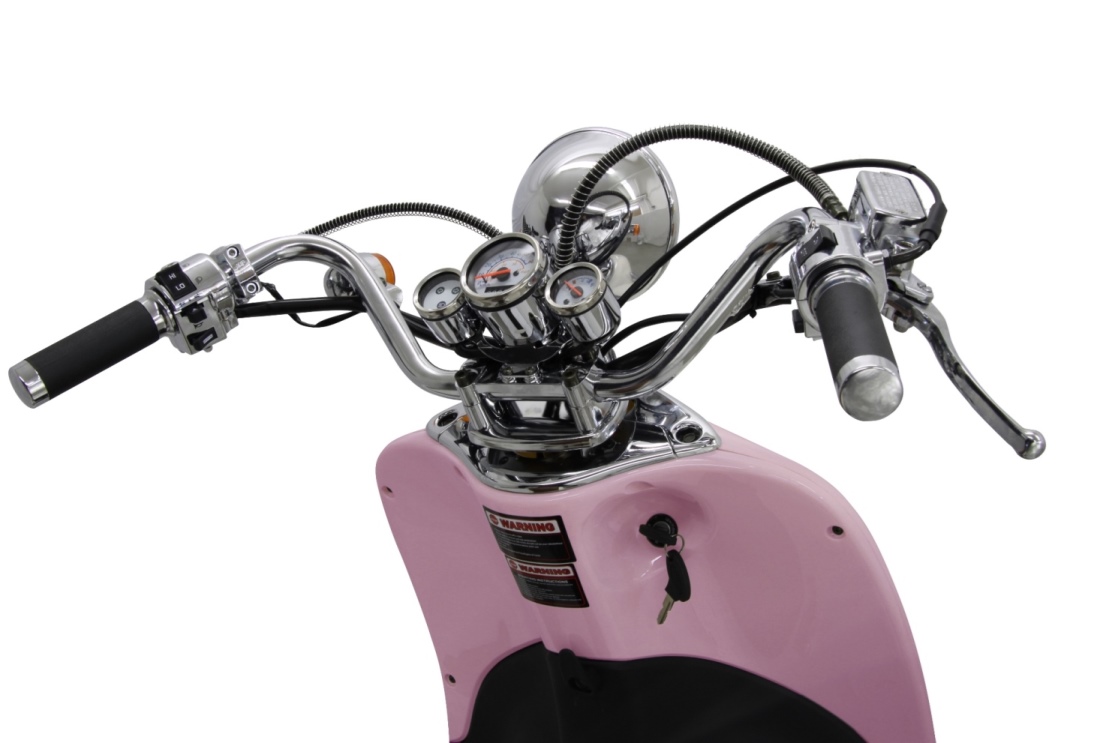 Single- Shock- Absorber (Federbein hinten) Gepäckträgereinheit, Staufach unter der Sitzbank, Klarglasscheinwerfer, Frontscheinwerfer mit verchromten Visor, mechanisch betätigte Trommelbremsanlage hinten mit Feststell- Funktion/Handbremse, hydraulische Scheibenbremse vorne, Weise Ziffernblätter in der Tachoeinheit, Sitzbankfarbe kann mit der jeweiligen Rollerfarbe kombiniert werden, ausklappbare Fußrasten für den Sozius, gut verstellbare Rückspiegel